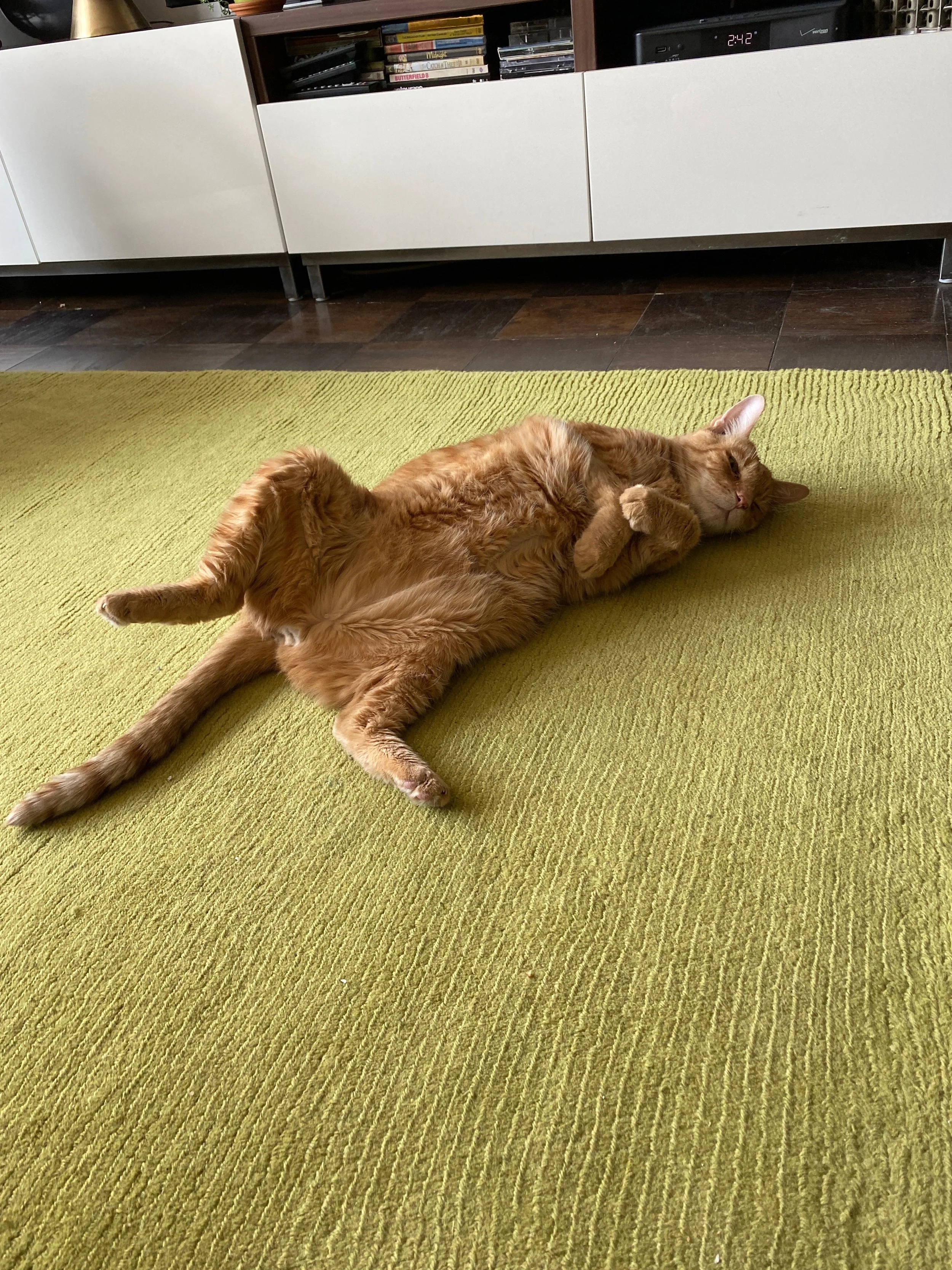 My Mom’s cat, Beau – or as I called him,Beau-Beau – had been with me for a while when the pandemic arrived. When my Mom died I took him in, despite the fact that he’d snubbed me big time over the years. He was a very affectionate, (at least with my Mom)kind of plump, 8-year old ginger-tabby. I guess he was a one-woman cat. Gradually I became his Human.